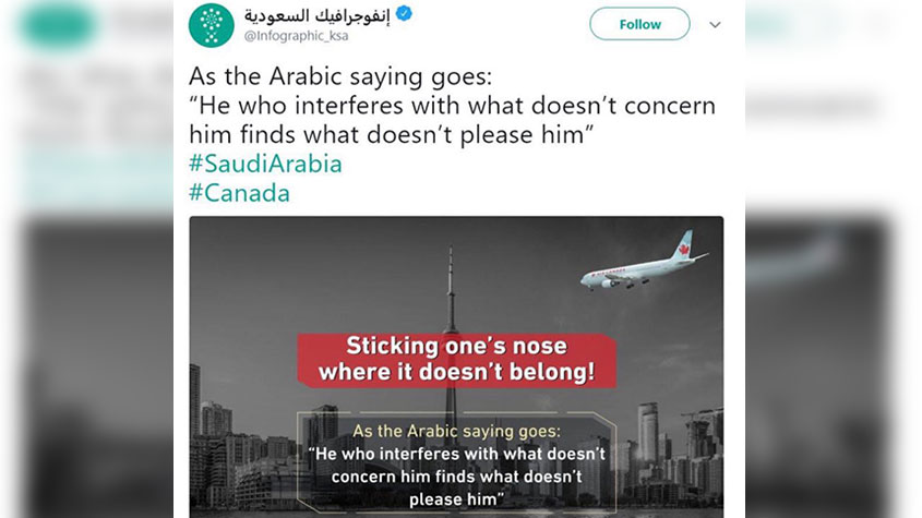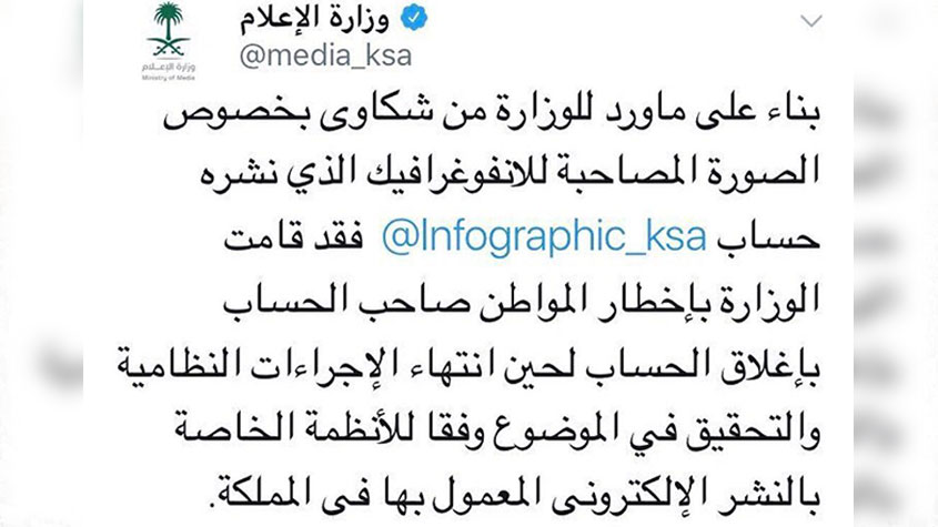 بعد تهديده #كندا بعمل إرهابي.. وزارة الإعلام تعلن إغلاق حساب ’’إنفوغرافيك #السعودية’’