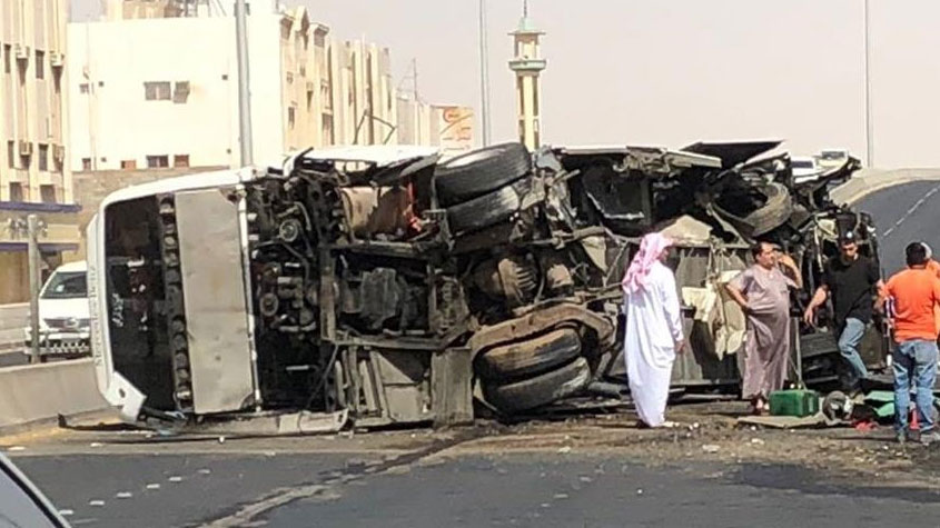 #تبوك: إصابة 36 عاملاً في حادث انقلاب حافلة