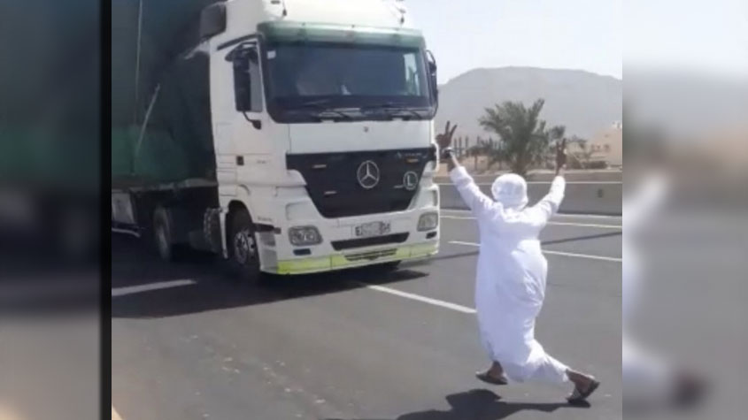 #المرور: القبض على مواطن قفز أمام شاحنة في #المدينة_المنورة