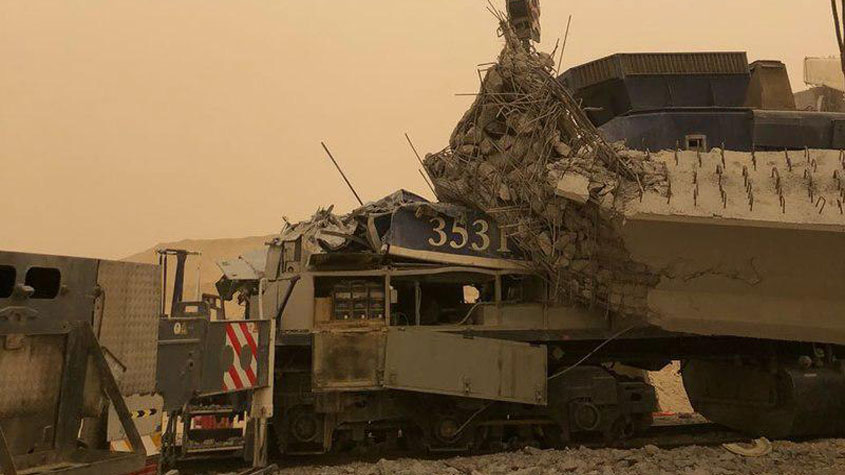 سقوط جسر خرساني في #الرياض على قطار يُصيب سائقه ويُغلق خطاً حديدياً (صور)