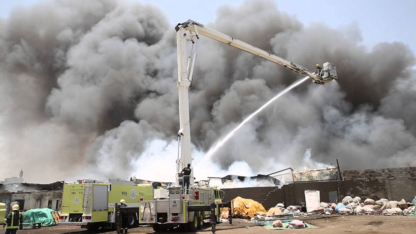 انحراف مركبة يصيب 5 في #مكة.. واحتراق مستودع ملابس بـ #جدة