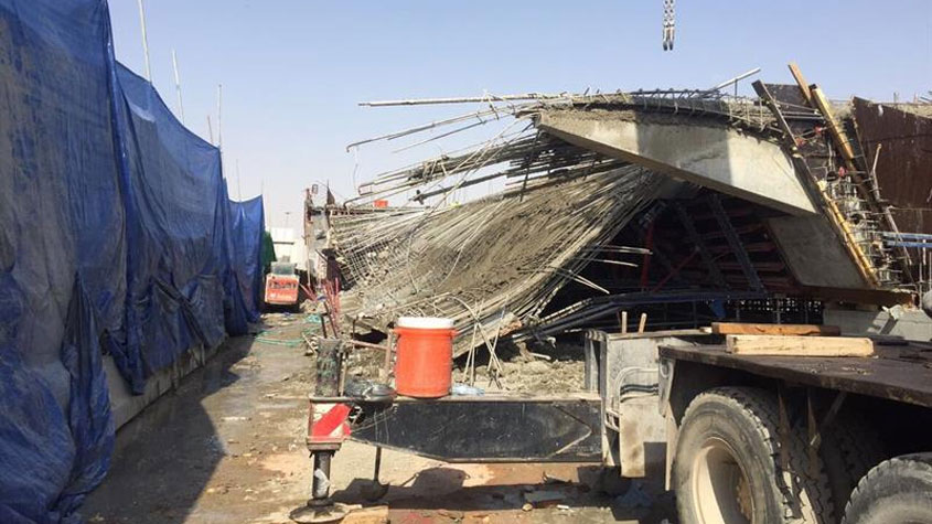 انهيار جزء من مشروع جسر طريق التخصصي في #الرياض