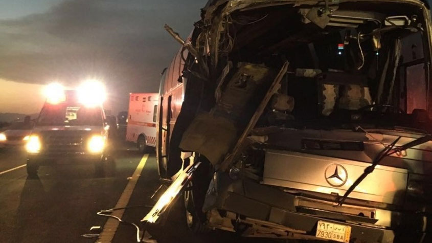 #مكة: اصطدام حافلة معتمرين بشاحنة وإصابة 20